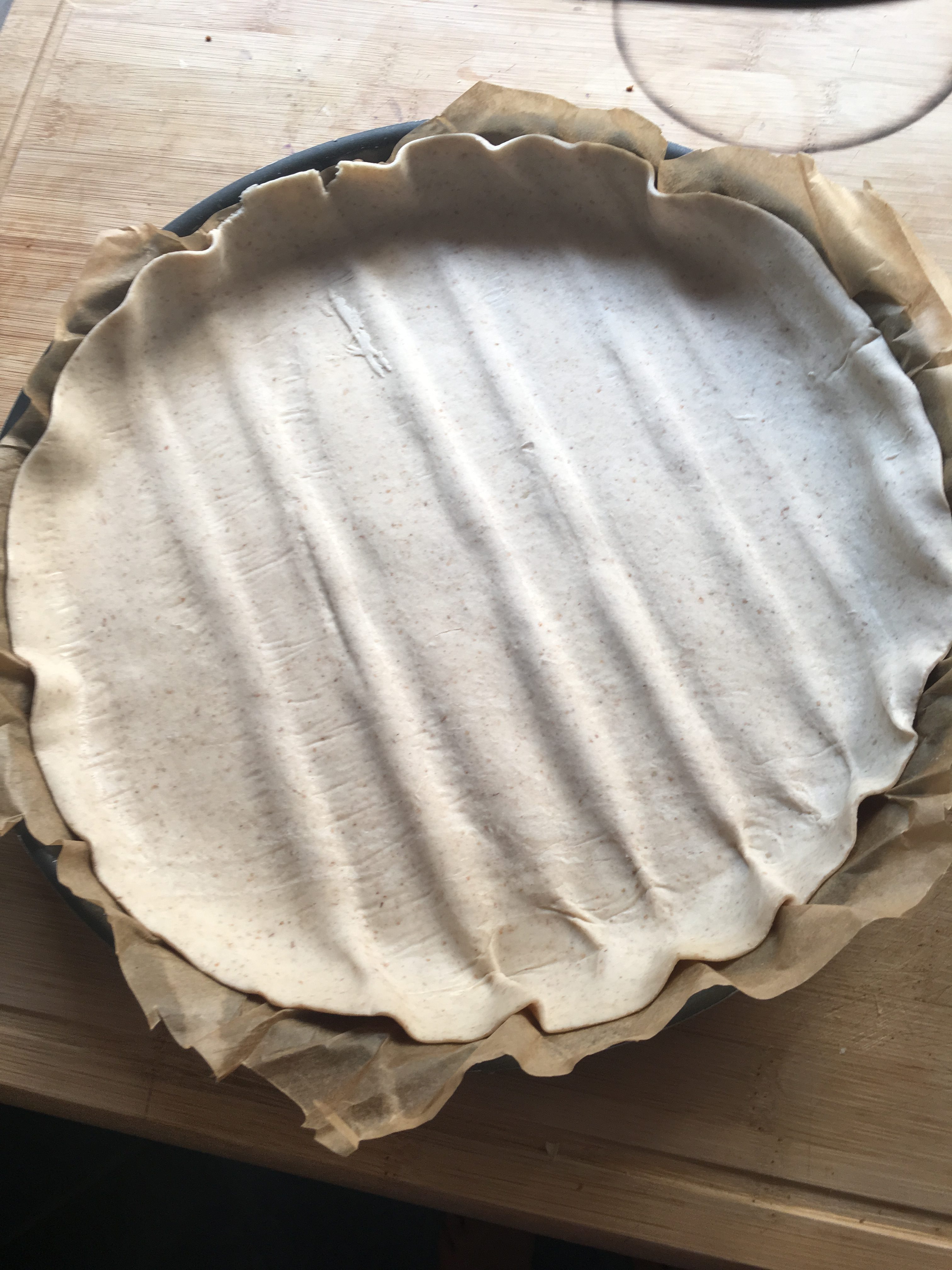 2/ Mettez votre pâte dans son moule et enfournez-la pour 15mn. N’oubliez pas de percer des petits trous au milieu avant de la mettre au four pour évitez qu’elle ne gonfle trop !