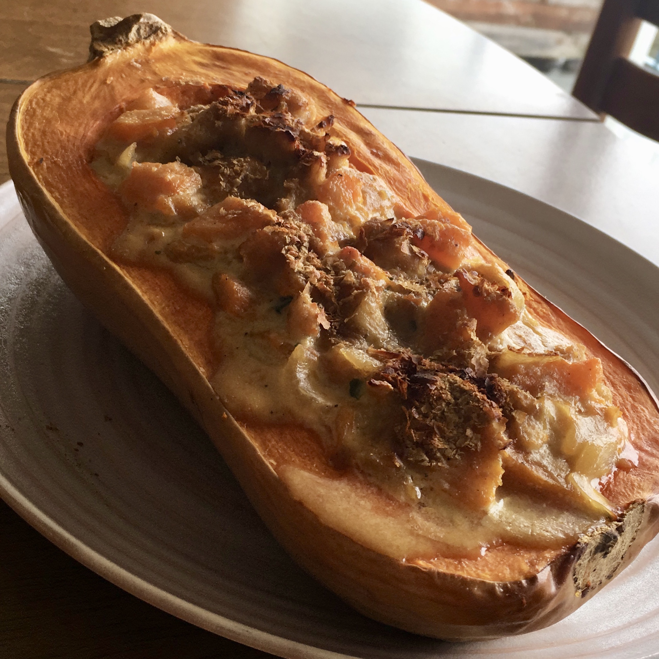6/ Farcir vos butternuts (ajoutez la levure de bière par dessus) et enfournez pour 15 minutes. Ça se mange directement à la cuillère, c’est fondant, c’est une tuerie.