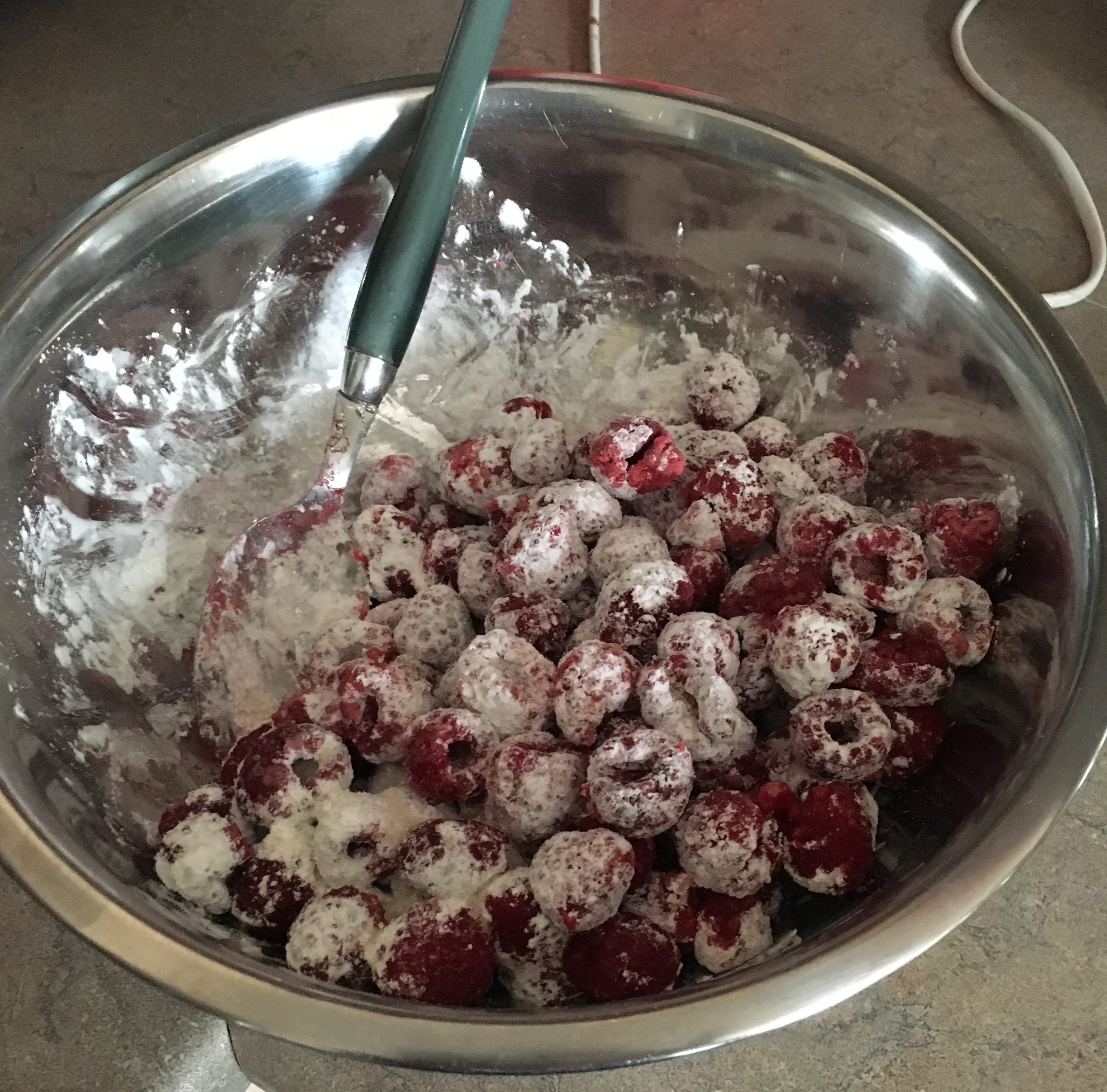1/ Mélangez les framboises avec le sucre et la fécule de maïs.