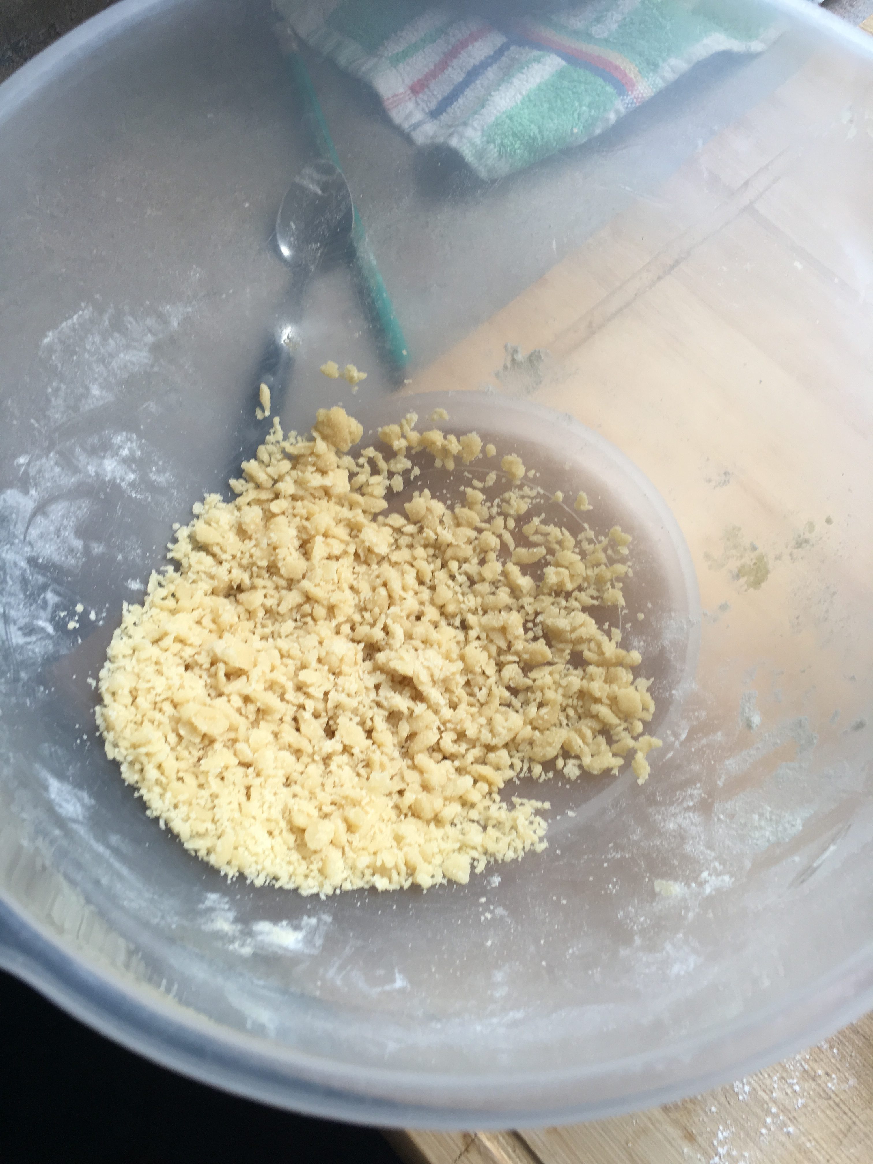 2/ Émiettez finement votre reste de pâte dans un autre saladier.